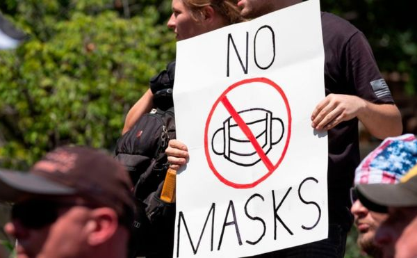 Durante la pandemia de covid-19, se han organizado manifestaciones en contra del uso de mascarillas en Estados Unidos.