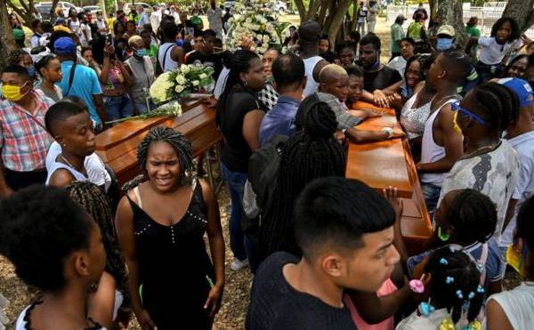 El jueves, las familias de las víctimas organizaron un funeral que primero fue interrumpido por médicos forenses y luego por una granada que detonó en una estación de policía muy cerca de la zona, dejando seis heridos.