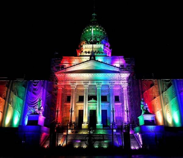 En la madrugada del miércoles el Parlamento fue iluminado con los colores del arco iris que identifican a la comunidad LGBT.