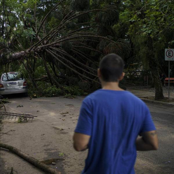Un residente fue registrado este miércoles, 17 de enero, al observar los daños causados por las intensas lluvias y fuerte vientes en la ciudad de Porto Alegre (Río Grande do Sul, Brasil).( )