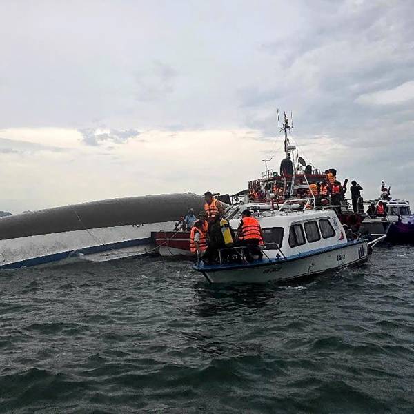 La embarcación transportaba 48 pasajeros y cinco tripulantes cuando volcó a causa de una fuerte lluvia.