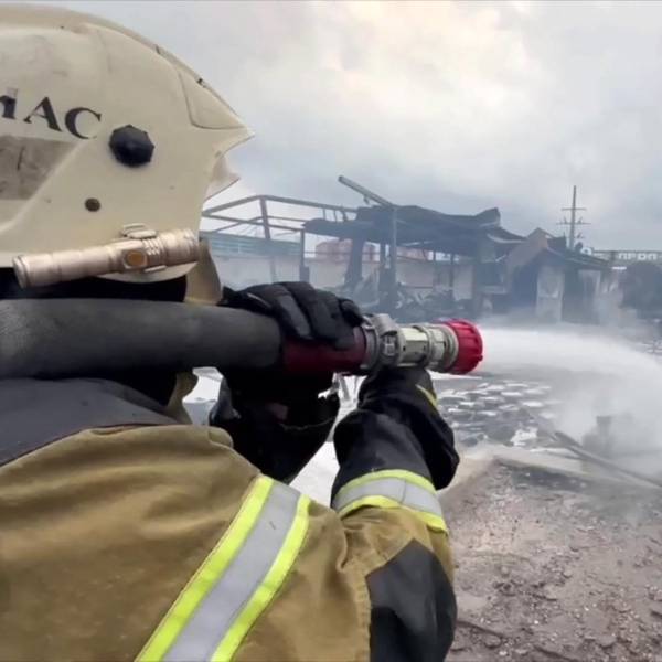 Un bombero trabaja en el lugar de una explosión en una gasolinera en Grozny, Chechenia.( )