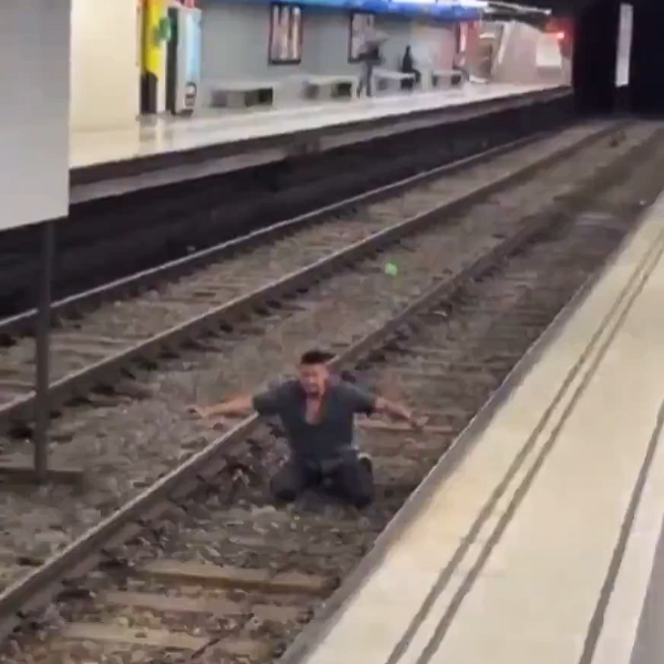 Un video grabado por los transeúntes muestra la escena de máxima tensión: el convoy se acercaba sin posibilidad de frenar, mientras el hombre permanecía inmóvil sobre las vías. La multitud en el andén contuvo la respiración hasta que, en un impulso desesperado, el individuo logró saltar de regreso al andén segundos antes del impacto, evitando una tragedia.