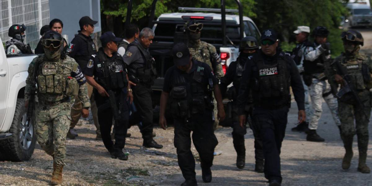 Miembros del Ejército Mexicano, Marina Armada de México, Guardia Nacional, Policía Estatal y la Unidad Canina de la FGE, participan en un operativo.( )