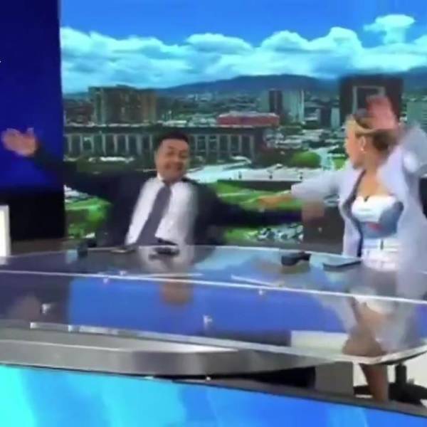 Mientras se despedía momentáneamente del segmento para dar paso a una pausa comercial, el presentador intentó apoyarse en su silla giratoria, la cual cedió repentinamente. Como resultado, Martínez cayó al suelo ante las cámaras.
