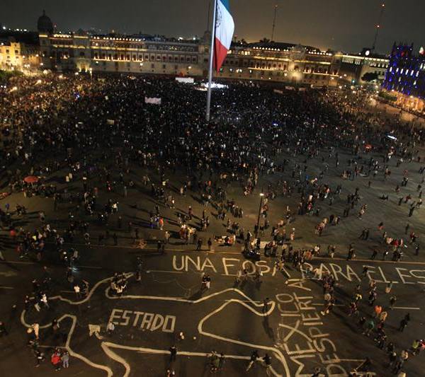 La Plaza de la Constitución, conocida como Zócalo, una explanada de casi cinco hectáreas donde confluyeron tres contingentes de padres y compañeros de los desaparecidos que durante una semana recorrieron México para sensibilizar a la población sobre la tragedia, se vio completamente llena de manifestantes.