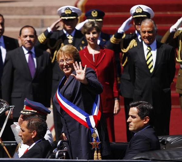 Bachelet, quien ostentó este cargo entre 2006 y 2010, recibió -en una ceremonia celebrada en la sede del Congreso chileno, en el puerto de Valparaíso- la banda presidencial de manos de Isabel Allende, hija del fallecido presidente Salvador Allende y primera mujer en ocupar ese cargo, otro signo de los nuevos tiempos que corren en Chile.