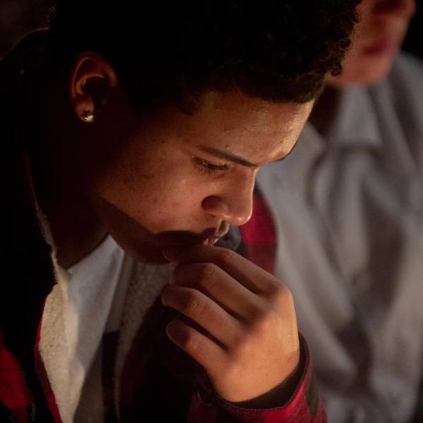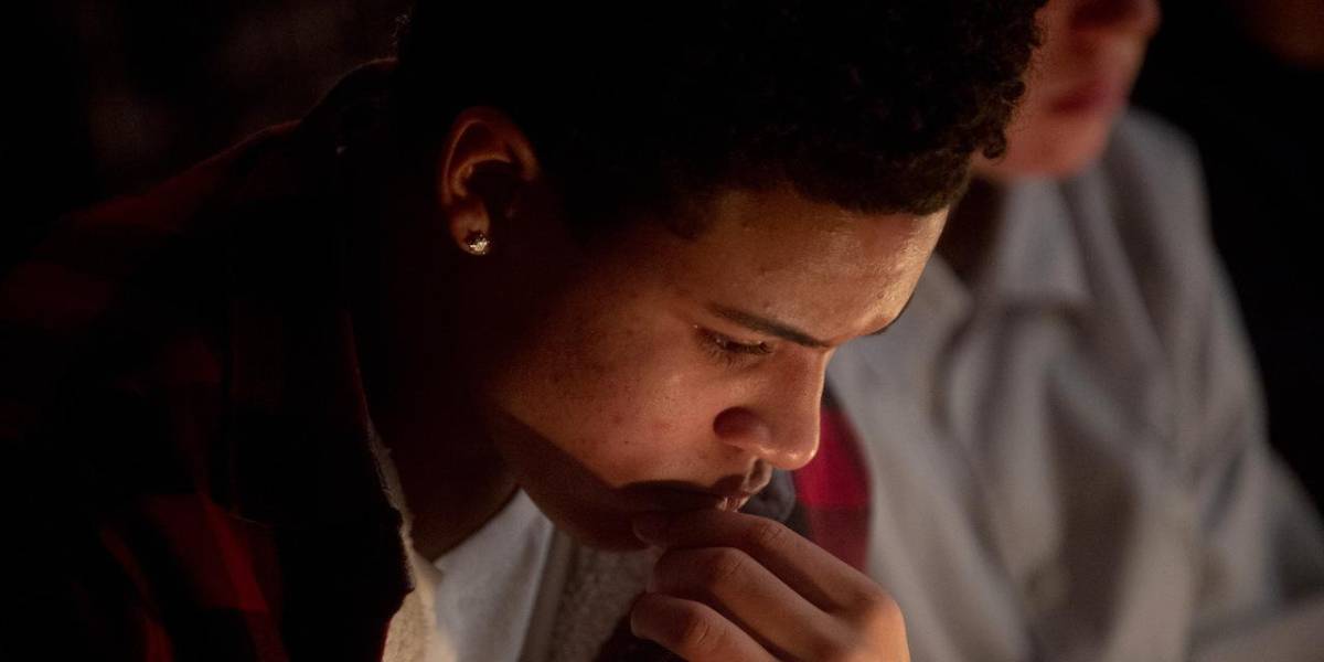Michael Roper, estudiante de la escuela secundaria Oxford, escucha oraciones durante una vigilia después del tiroteo.( )