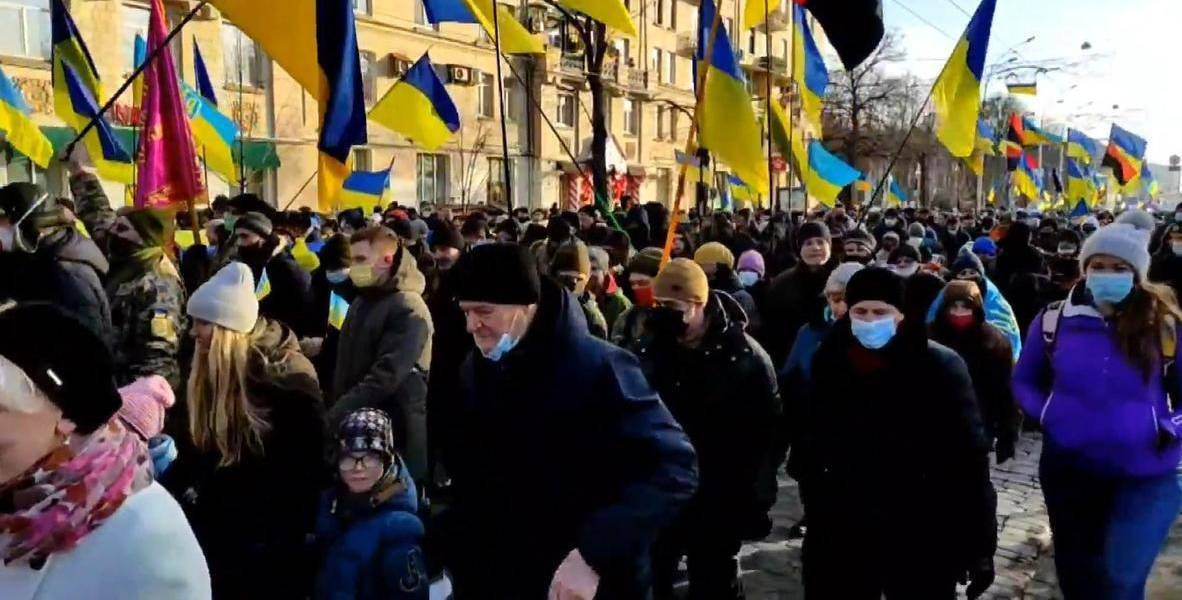 Más de 5.000 personas, según observadores, se sumaron hoy en Kiev a la Marcha por la Unidad para expresar su disposición a resistir a una eventual agresión rusa en momentos en que Rusia ha concentrado más de 100.000 soldados cerca de las fronteras ucranianas y lleva a cabo maniobras en la vecina Bielorrusia y el mar Negro.