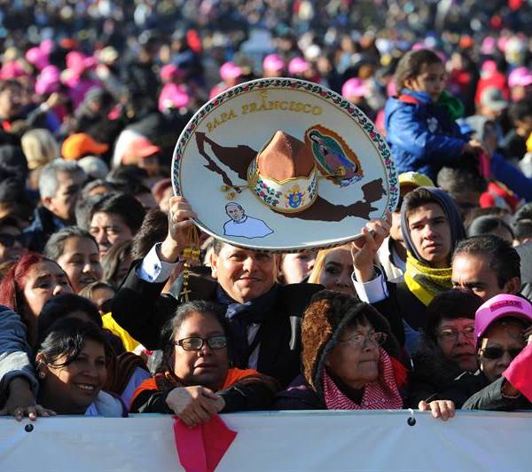 A minutos de que pase a escasos metros, los fieles cantan el típico "Cielito Lindo" y le dedican un eufórico "¡Papa Francisco, México está contigo!".