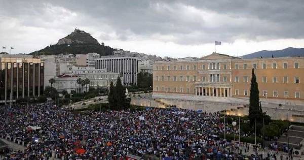 Miles de griegos se manifiestan por "sí" en referéndum y permanencia en euro