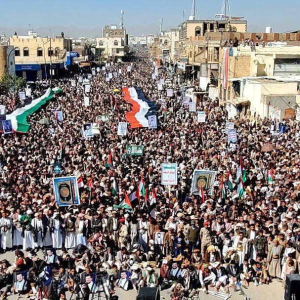 La multitudinaria protesta, que también fue replicada en otras ciudades del Yemen, mandó un mensaje desafiante a los estadounidenses y británicos