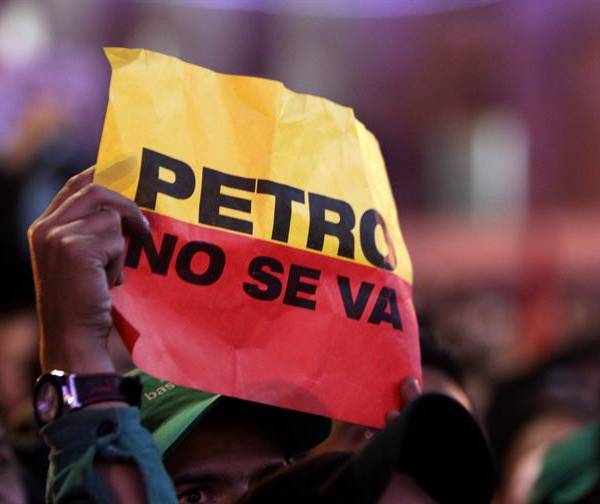 Su testigo, el de Petro, lo recogió Aída Abella, candidata presidencial por la Unión Patriótica (UP), que tras 17 años en el exilio regresó a Colombia hace pocas semanas, y arengó al pueblo en favor del mandatario destituido.