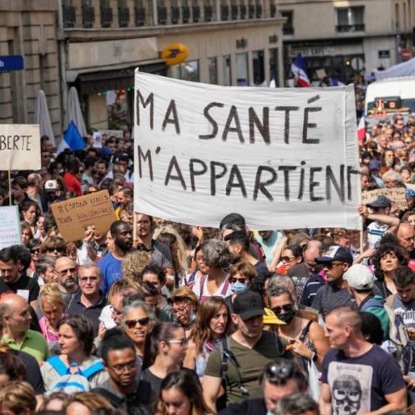 Los manifestantes corearon “¡Libertad!” y llevaban carteles que denunciaban a Macron y lo que llamaron una “dictadura médica”. Se realizaron protestas similares también en Estrasburgo, Lille, Montpellier y otras partes del país.