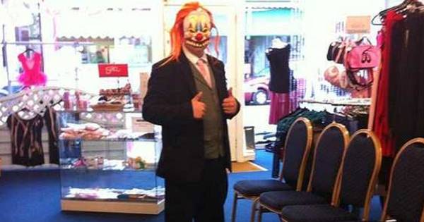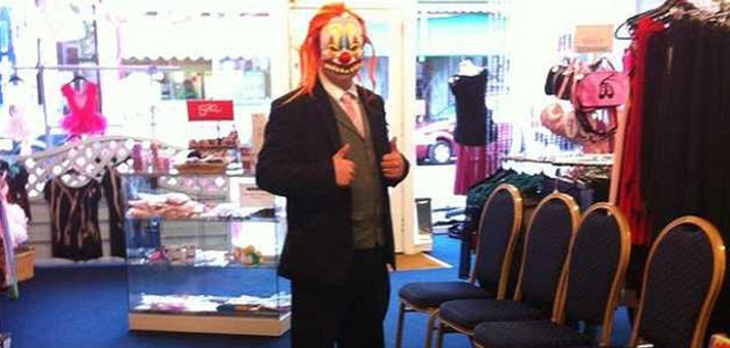 El misterioso payaso visita tiendas en Portmsouth y se queda parado en silencio.