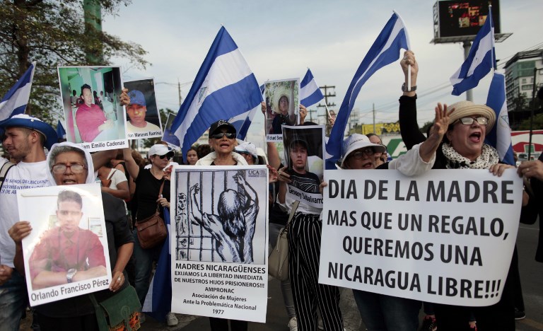 Madres demandan justicia para sus hijos que murieron durante las recientes protestas en Nicaragua. Foto: AFP