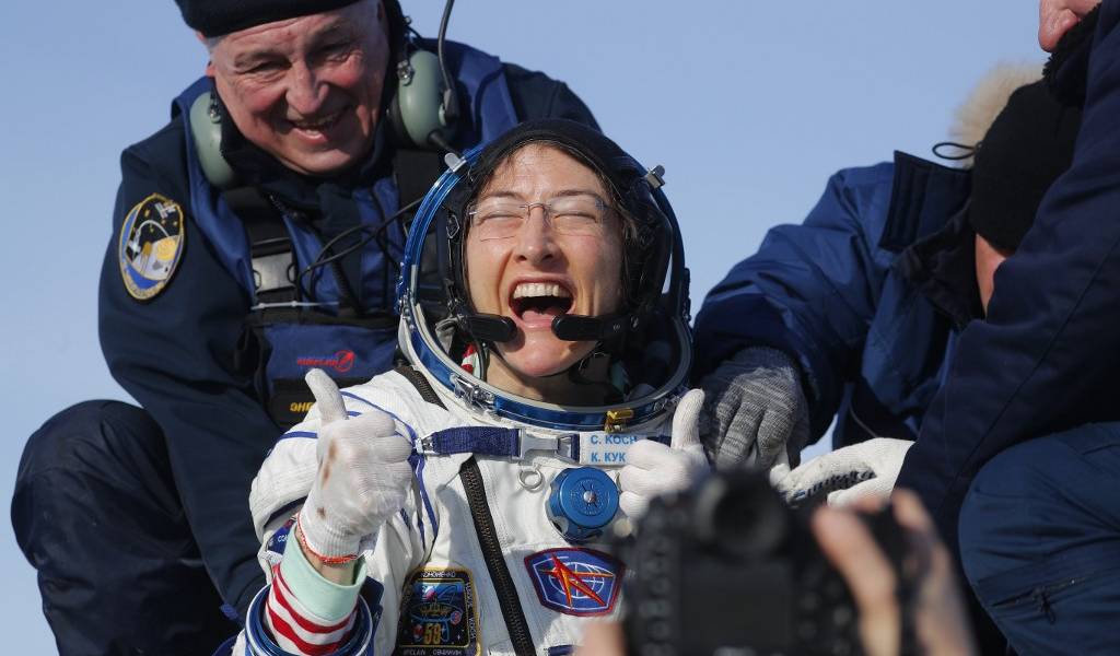 La astronauta estadounidense Christina Koch regresó a la Tierra este jueves después de haber pasado casi un año a bordo de la Estación Espacial Internacional (ISS) y batió así el récord femenino de permanencia en el espacio.