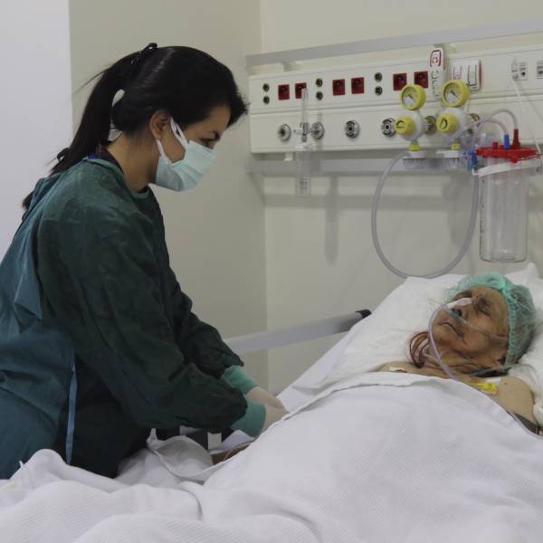 Una enfermera monitorea a Ayse Karatay en el Hospital Municipal de Eskisehir.( )