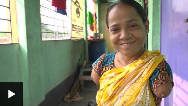 Hoy, esta mujer se gana la vida con las artesanías que hace con sus pies.