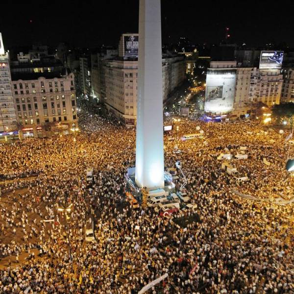 "Está muy mal, está muy mal, mentirle al pueblo por cadena nacional", coreaba la multitud concentrada al pie del Obelisco porteño, epicentro de las marchas de protesta en Buenos Aires.