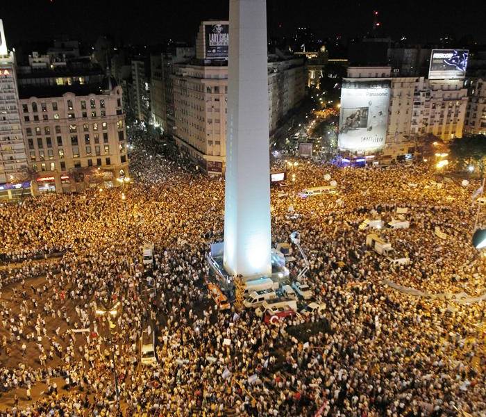 Cientos de miles de argentinos salieron hoy masivamente a la calle en distintos puntos del país para protestar contra las políticas del Gobierno de Cristina Fernández, una multitudinaria movilización convocada a través de las redes sociales.