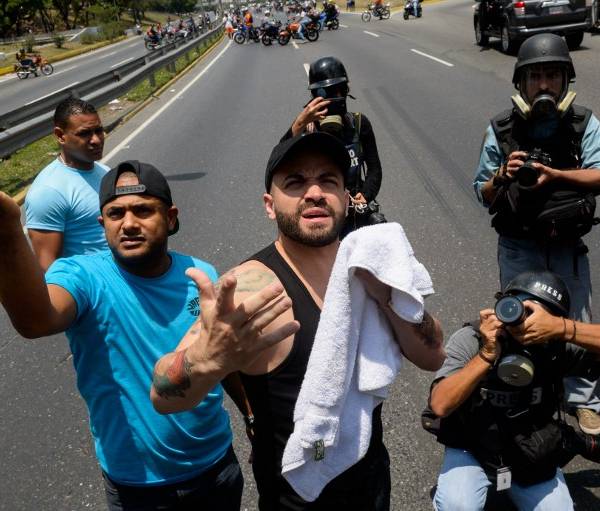 Algunos opositores respondieron con piedras a la lluvia de gases, pero el cantante, que ha pedido a Maduro que renuncie, afirmó que no apoya la violencia mientras se secaba el rostro con una toalla, con la respiración entrecortada.