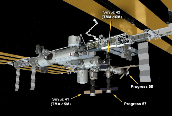 Los tres ocupantes del Soyuz, los cosmonautas rusos Guennadi Padalka y Mijaíl Kornienko, y el astronauta estadounidense Scott Kelly, ingeniero de vuelo de la NASA, serán recibidos por los tres miembros actuales de la tripulación de la ISS.