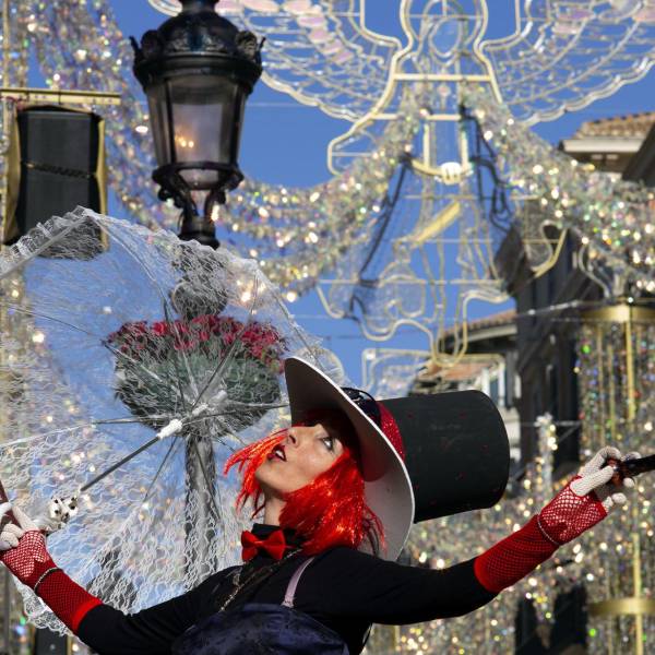 Una persona disfrazada con el alumbrado de navidad en la popular calle Larios de Málaga, el domingo 24 de diciembre.( )