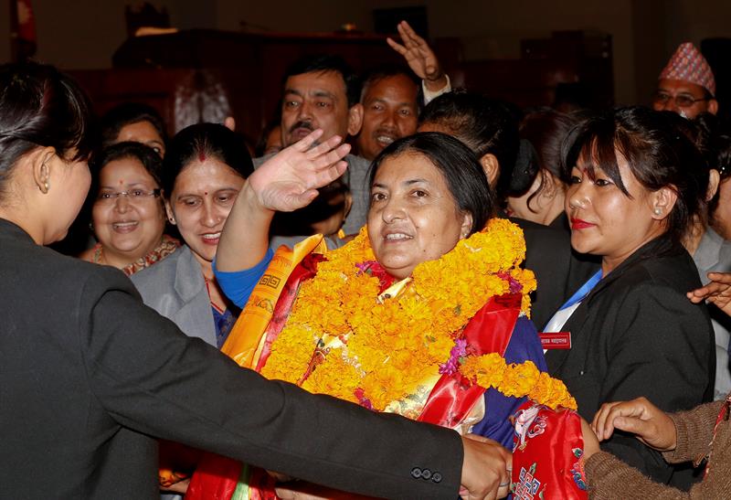 El Congreso de Nepal eligió este 28 de octubre de 2015 a Bidhya Devi Bhandari, dirigente del Partido Comunista de Nepal UML (marxista-leninista), como nueva presidenta del país, la primera mujer en ocupar el cargo y también la primera vez que se designa ese puesto bajo la nueva Constitución republicana.
