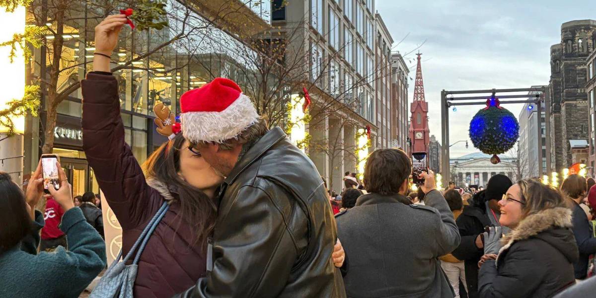 DowntownDC BID se encargó de organizar el evento en la instalación artística del National Mistletoe, donde hay una esfera de tres metros de diámetro con un peso de 272 kilogramos, que está suspendida a nueve metros de altura y decorada con una campana, follaje y lazos rojos.