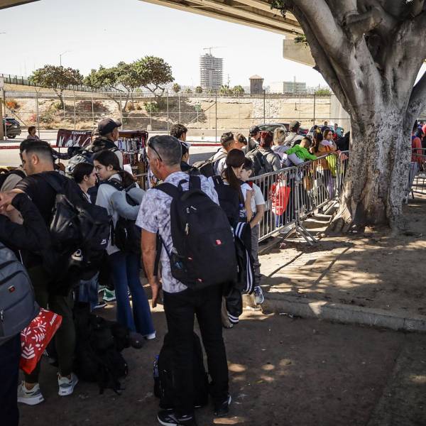 Migrantes hacen fila para solicitar papeles migratorios.( )