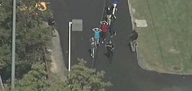 Los agentes policiales han cercado el territorio de la escuela y están instando a todos los estudiantes a buscar refugio y mantenerse alejados de puertas y ventanas.