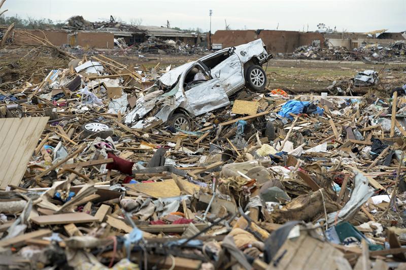 El tornado que azotó la zona hace unos días, que alcanzó la categoría más alta, EF-5, arrasó unos 27 kilómetros a las afueras deOklahoma City, destruyendo edificios enteros, dos colegios y un hospital en apenas 50 minutos.