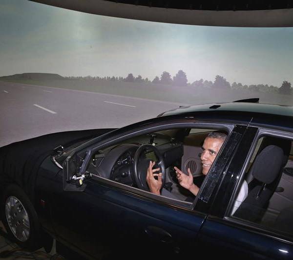 Durante una visita a un laboratorio, donde se prueban tecnologías que permiten a los vehículos comunicarse entre sí, Obama tuvo la oportunidad de manejar un simulador de automóvil diseñado para avisar a su ocupante "si un vehículo cercano va a saltarse un semáforo o si se acerca un automóvil" a demasiada velocidad, explicó.