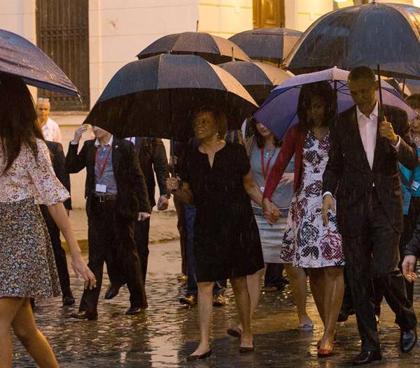 Obama y su familia se dan un paseo por La Habana Vieja a pesar de la lluvia