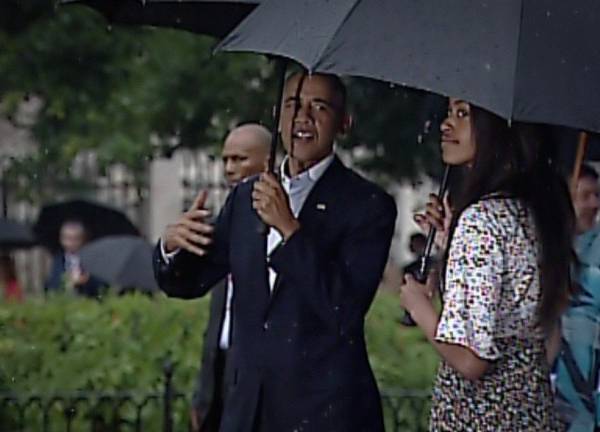 El encuentro con los funcionarios se celebró en el salón del hotel donde se aloja gran parte de la comitiva oficial que acompaña a Obama, ya que la lluvia impidió hacer ese acto en la Embajada al aire libre como estaba previsto.