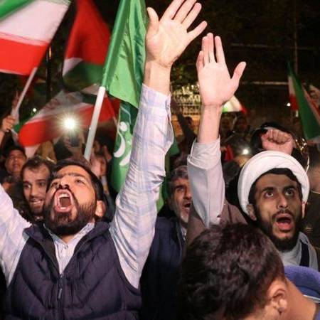 Manifestantes iraníes en Teherán reaccionan tras el ataque iraní a Israel.( )