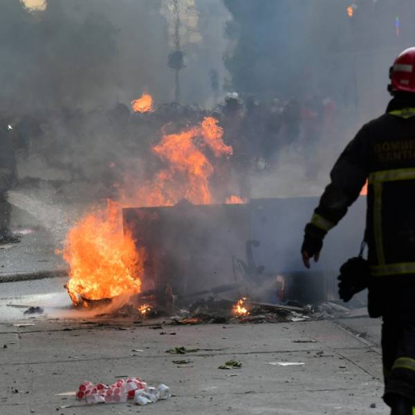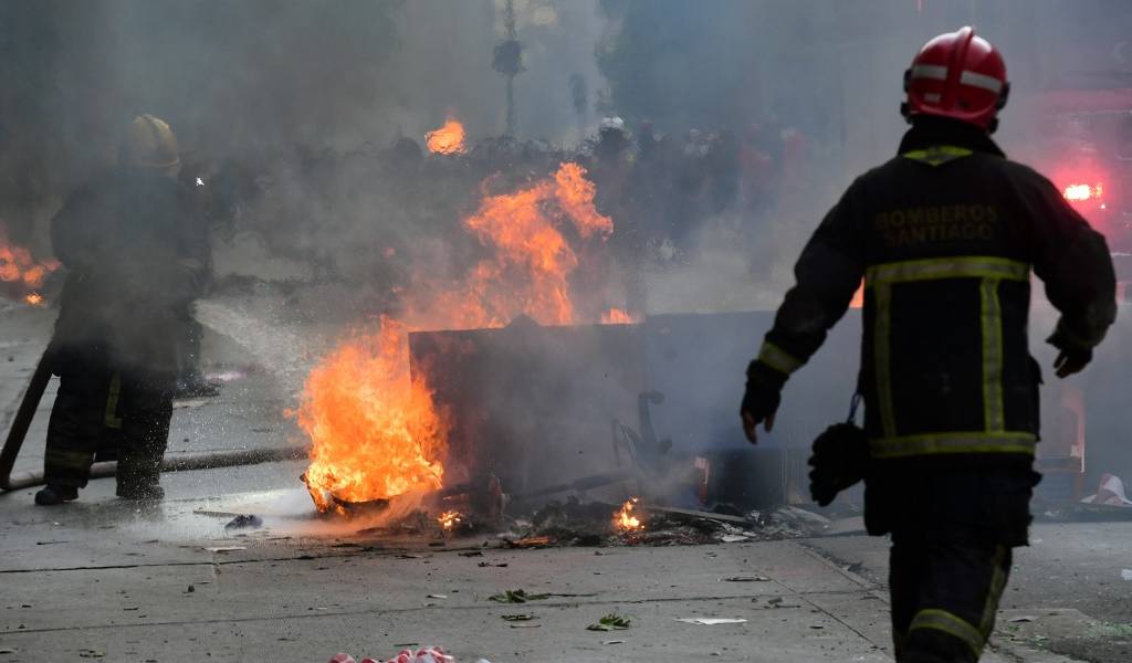 Los manifestantes también armaron barricadas y las incendiaron, mientras que en el turístico cerro Santa Lucía, ubicado en pleno centro capitalino, se produjo un incendio que fue controlado por bomberos.