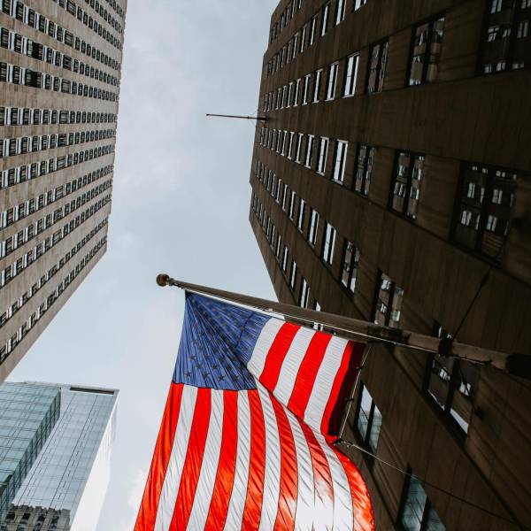 Bandera de los Estados Unidos sobre un edificio de Manhattan, Nueva York. ( )