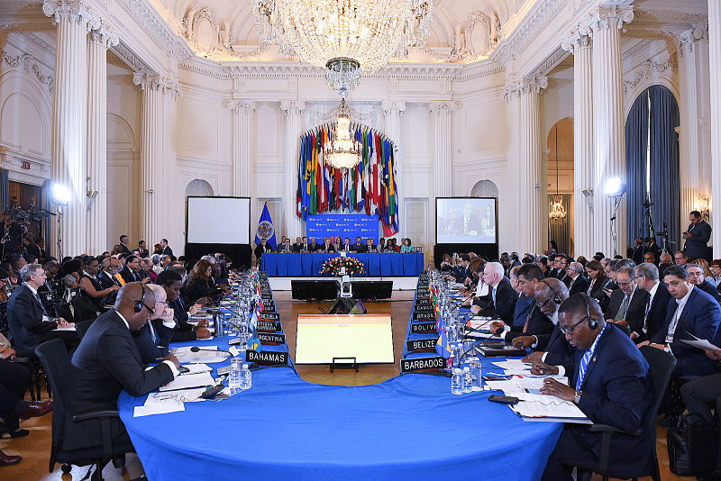 La asamblea de la Organización de Estados Americanos (OEA), el principal foro político del continente, aprobó el martes 5 de junio de 2018 una resolución promovida por Estados Unidos que abre la puerta a una eventual suspensión de Venezuela del organismo por quiebre del orden democrático.