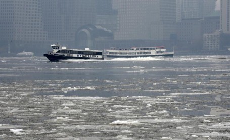 EE.UU.- Un ferry cruza las aguas medio congeladas del río Hudson en Nueva York. Fotos: EFE e Internet -