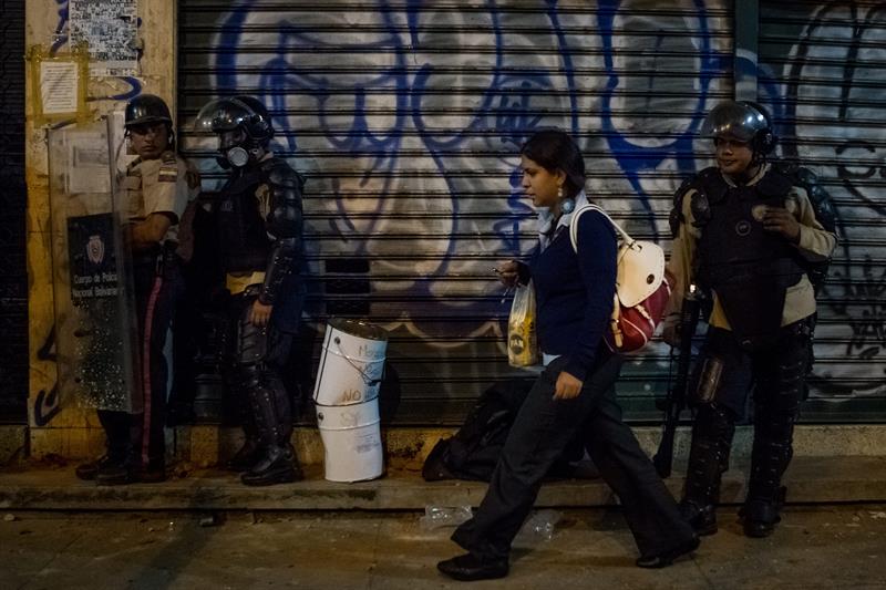 VENEZUELA.- Miembros de la Policía Nacional Bolivariana se enfrentan a manifestantes opositores al Gobierno del presidente Nicolás Maduro en el sector de Chacao. Fotos: EFE -
