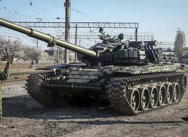 SIMFEROPOL.- Llegada de tanques T-72 del ejército ruso a bordo de trenes de mercancías a una estación de ferrocarril en Crimea. Foto: EFE.