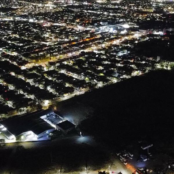 Fotografía aérea que muestra un apagón eléctrico este martes en algunas zonas de la ciudad de León (México).( )