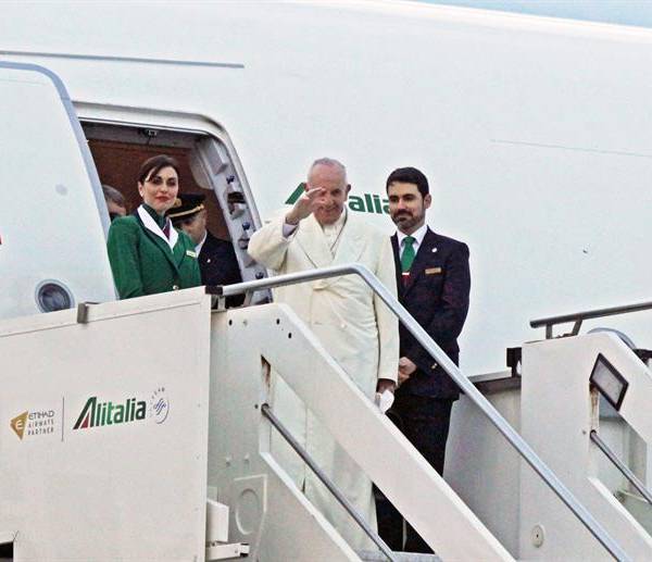 Posteriormente, el papa volverá a embarcarse en el avión de la compañía Alitalia para aterrizar horas más tarde en Ciudad de México, donde será recibido por su presidente, Enrique Peña Nieto.