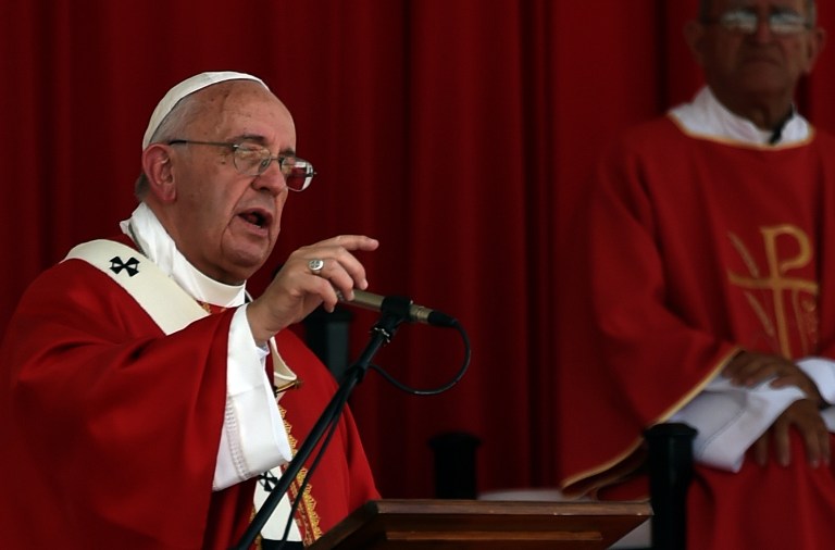 Francisco llegó este 21 de septiembre a Holguín, la ciudad natal de los hermanos Castro. Foto: AFP
