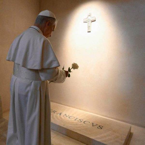 El nuevo Papa visitó la tumba de su predecesor y se comprometió a defender la dignidad humana frente a los desafíos de la nueva revolución industrial.