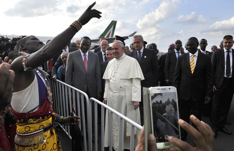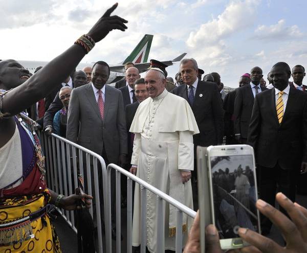 Francisco inició en Kenia su primera visita a África, un difícil viaje por la paz y la reconciliación que le llevará también a Uganda y la República Centroafricana, donde predomina la inseguridad.