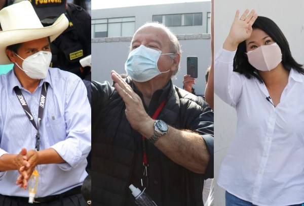 Pedro Castillo, Hernando de Soto y Keiko Fujimori aspiran pasar al balotaje.
