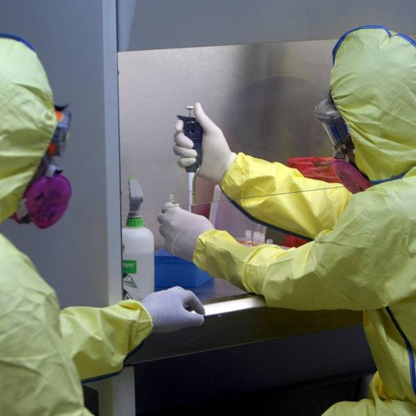 Imagen de archivo de dos médicos con trajes protectores. EFE/Rolex Dela Pena